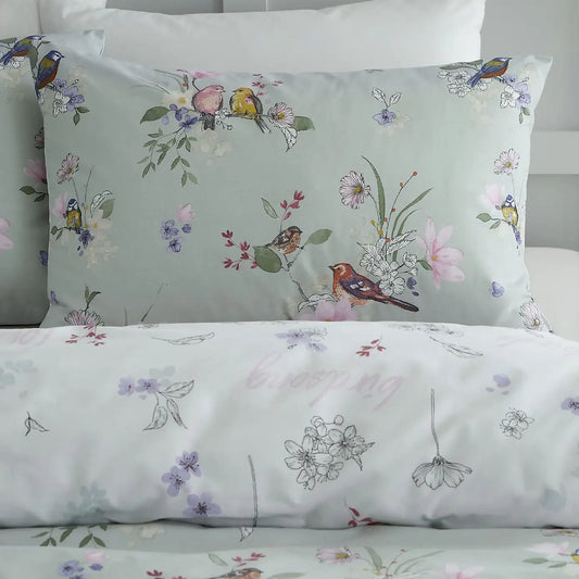 Catherine Lansfield Songbird Sage Reversible Duvet Set