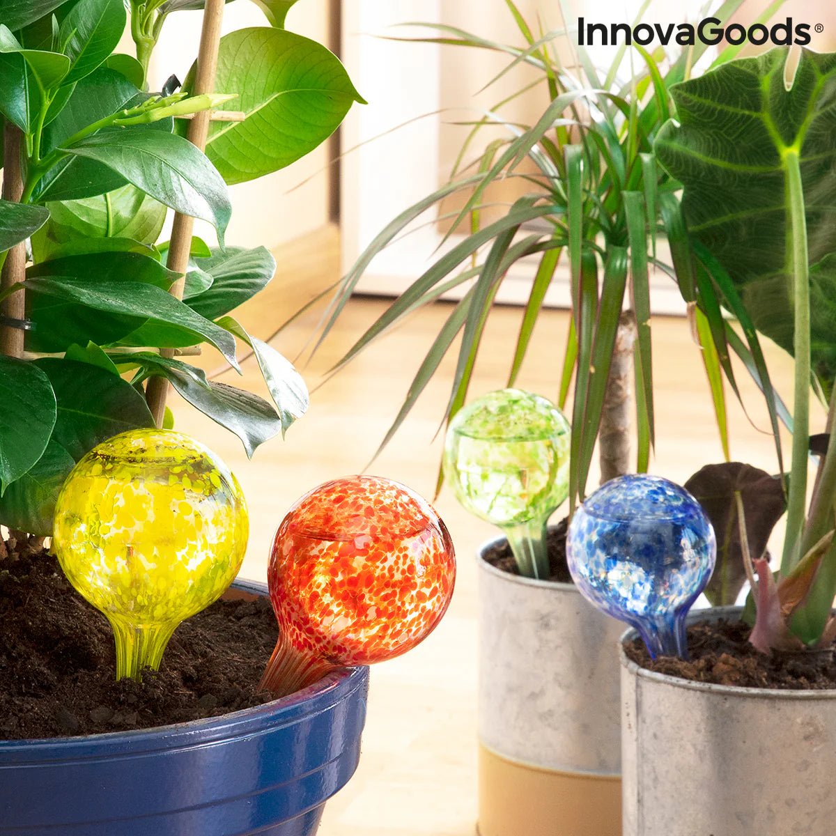 The Ballwooters InnovaGoods automatic watering balloons are a great invention to water plants easily and without any effort, since they capture the oxygen from the soil of the plant pot and provide that same amount of water. This convenient and innovative automatic watering system drips water onto the plant gradually over several days, thereby keeping the plants hydrated at all times. In addition, these watering spheres are highly decorative and ideal as an original gift.