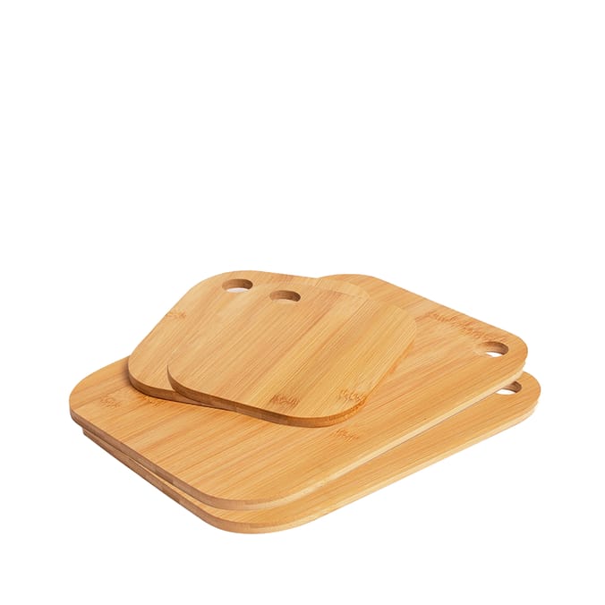 Chopping boards are an essential for any kitchen. Made from bamboo wood, which is a durable, eco-friendly, and renewable material. They are ideal for cutting and preparing food, as bamboo is gentle on knife blades and resistant to bacteria and moisture. The set of 4 provides versatility and convenience, as different boards can be designated for different food types to avoid cross-contamination. Additionally, the compact size and lightweight design make these boards easy to store and handle.