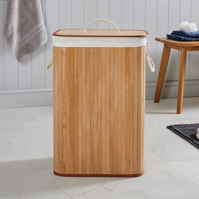 A bamboo laundry basket is a type of laundry storage box made from bamboo, a renewable and eco-friendly material. It is designed to hold dirty clothes and other laundry items until they can be washed. Bamboo is a popular choice for laundry baskets due to its durability, lightweight nature, and natural aesthetic appeal.