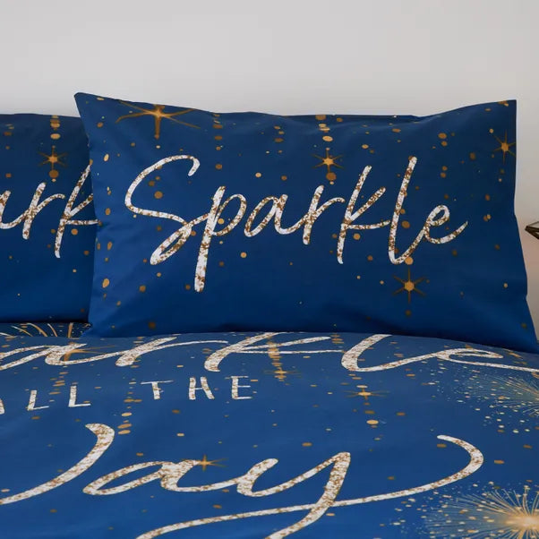 Catherine Lansfield Christmas Sparkle Reversible Duvet Set - Navy