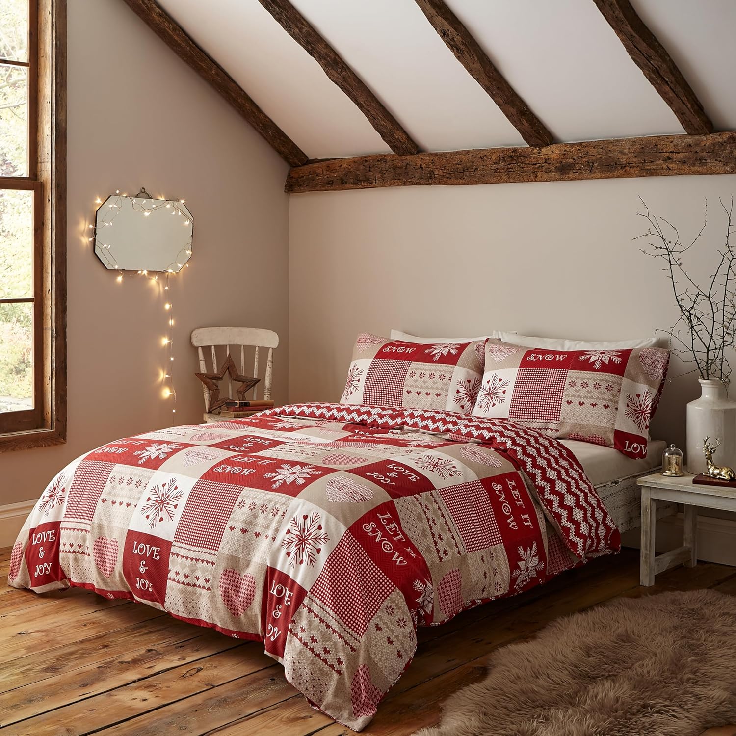 - Get cosy and warm under this Nordic style patchwork cotton-rich bedding with a Fair isle knitted-look reverse all designed with traditional hand-crafted motifs.