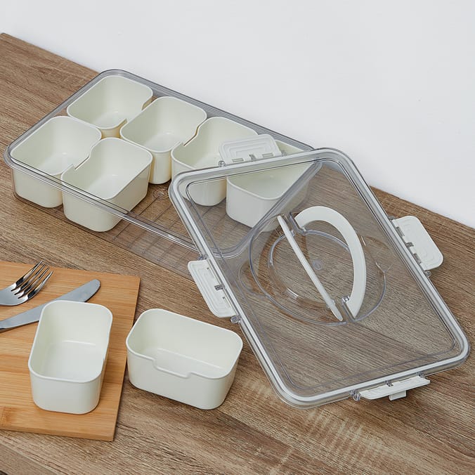 Meet your new snack-time bestie! This 8-compartment snack box is airtight to keep your goodies fresh and tasty. With removable compartments, you can mix, match, and organise your favorite treats however you like. Perfect for the kitchen, picnics, or on-the-go munching!