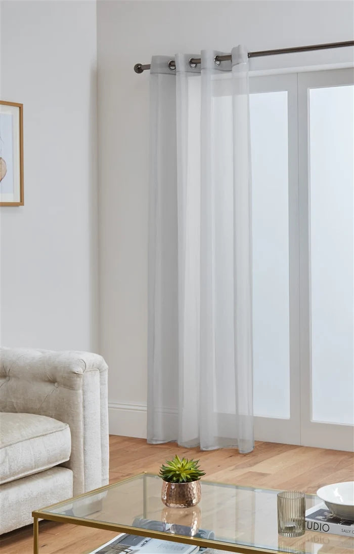 Lucy' Silver Eyelet Ring Top Voile Curtain Panel - 58x90 Drop (148x229cm)