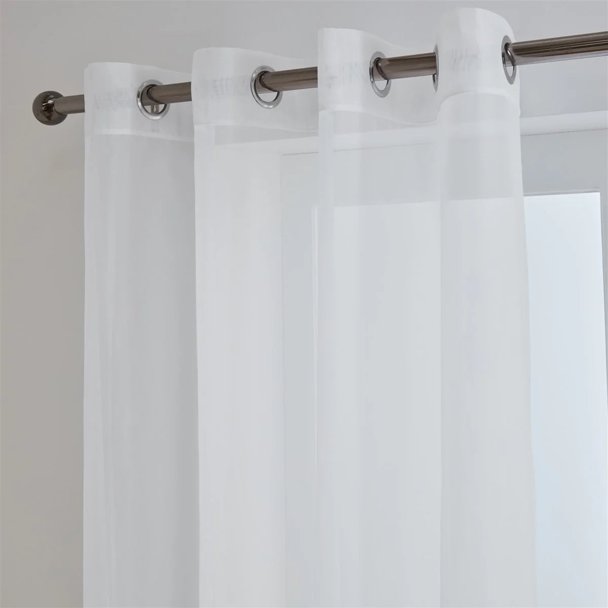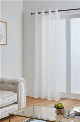 'Lucy' White Eyelet Ring Top Voile Curtain Panel - 58x90 Drop