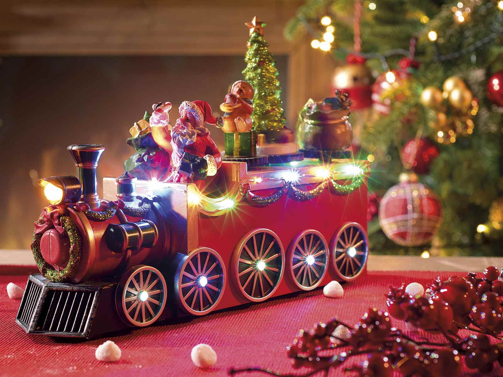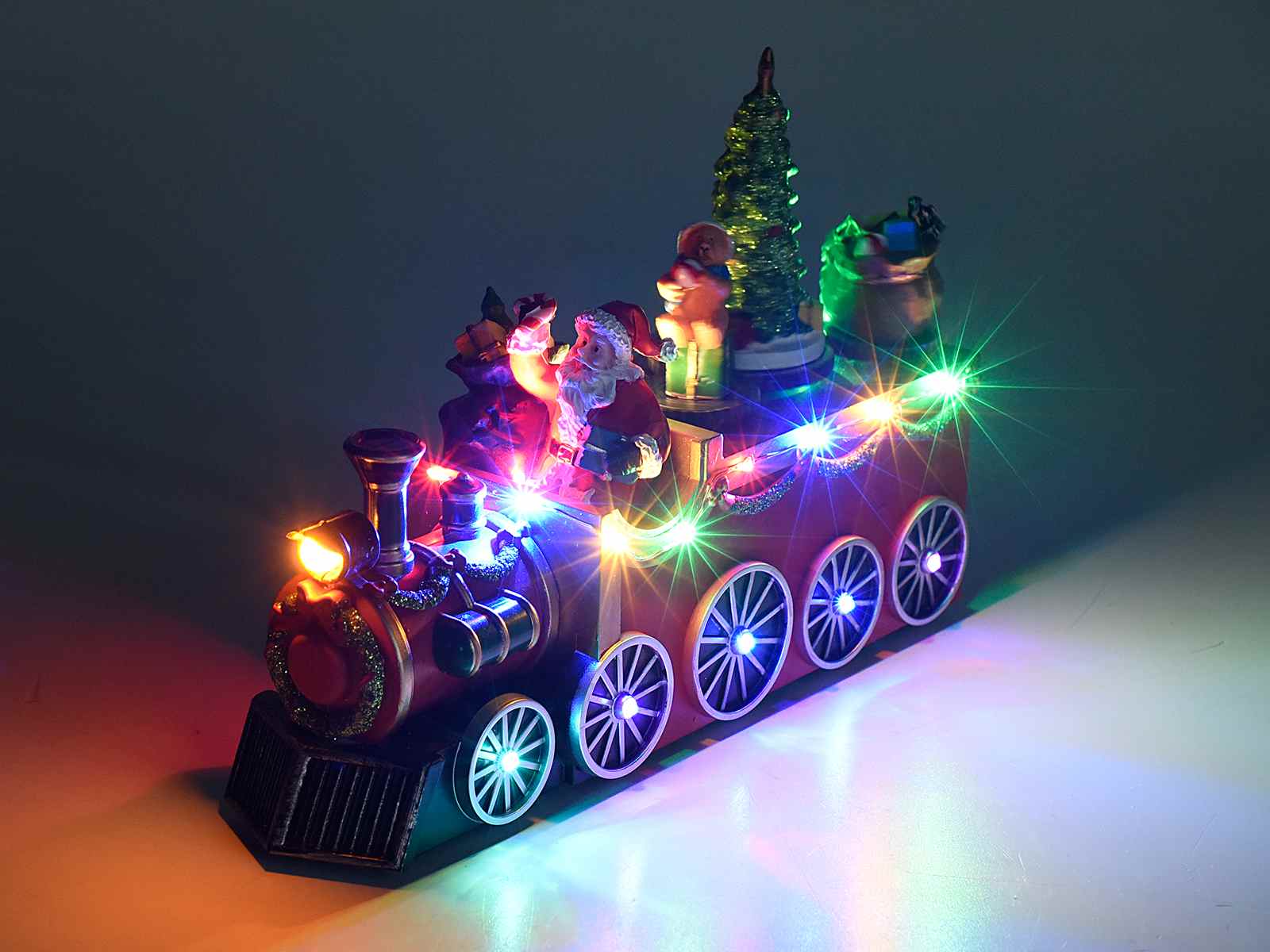 Christmas train with Santa Claus, movement, multicolored lights and music