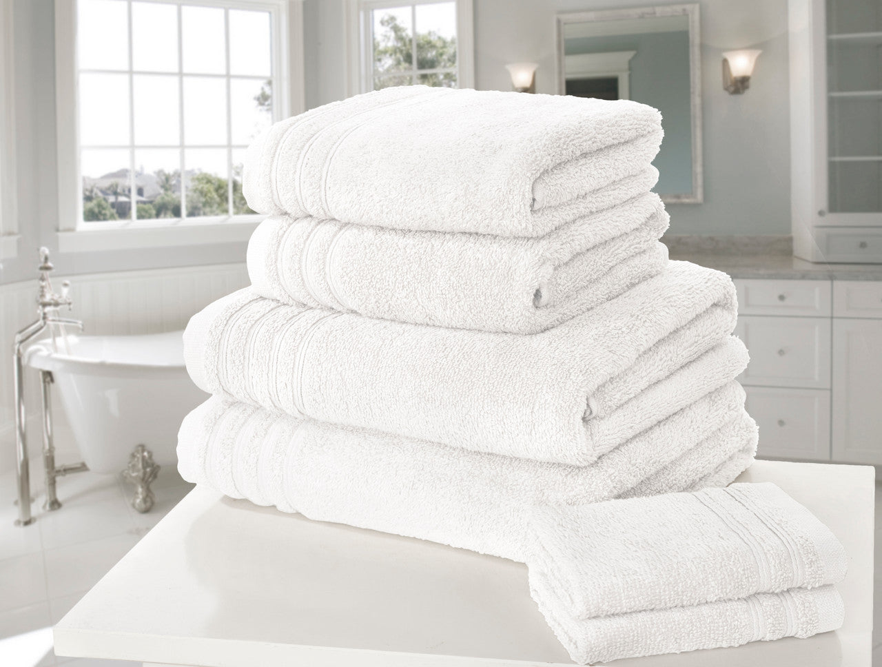 - 6-PC Bale: 2x face cloths (30x30cm), 2x hand towels (50x85cm), 2x bath towels (70x120cm)
