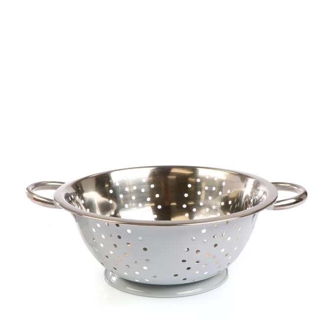 The Stainless Steel Colander, measuring 24cm in diameter, is a versatile kitchen tool designed for efficient straining, rinsing, and draining of various foods. The colander features evenly spaced perforations or drainage holes that allow water to drain quickly and efficiently while preventing small food items from slipping through.